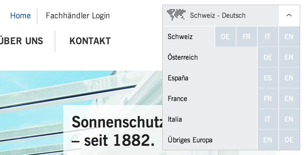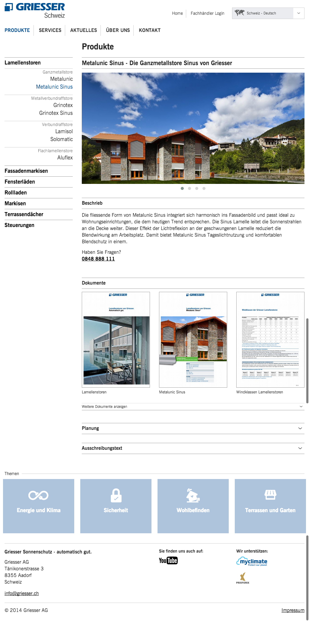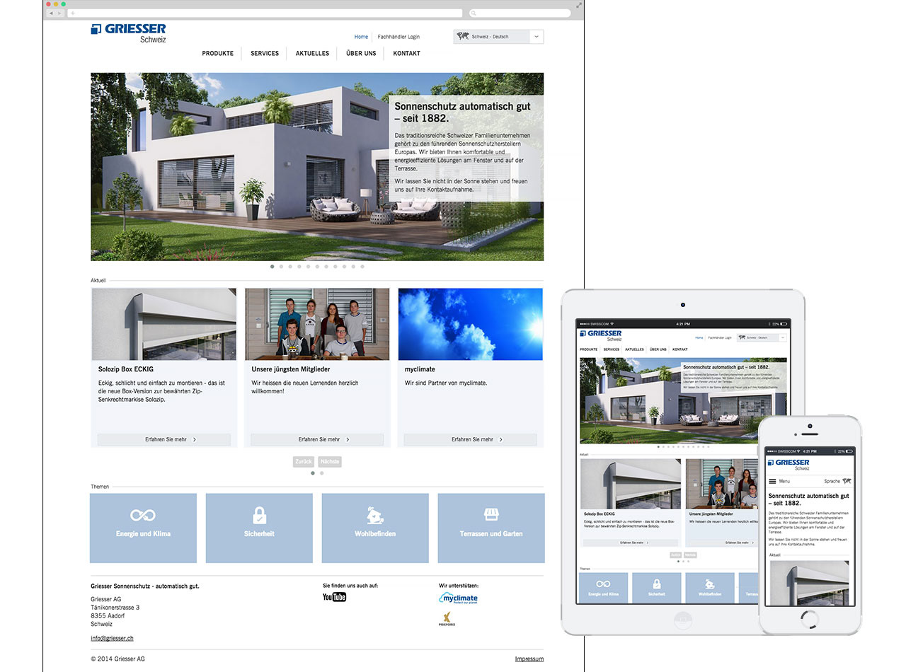 The long-established family company from Switzerland is numbered among Europe's leading manufacturers of solar shading. We have been entrusted with the implementation of the new page.
