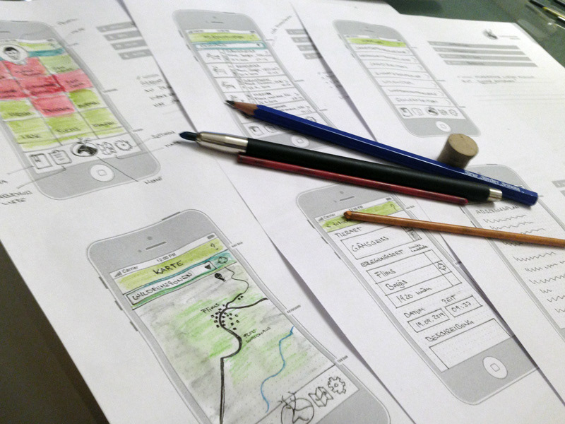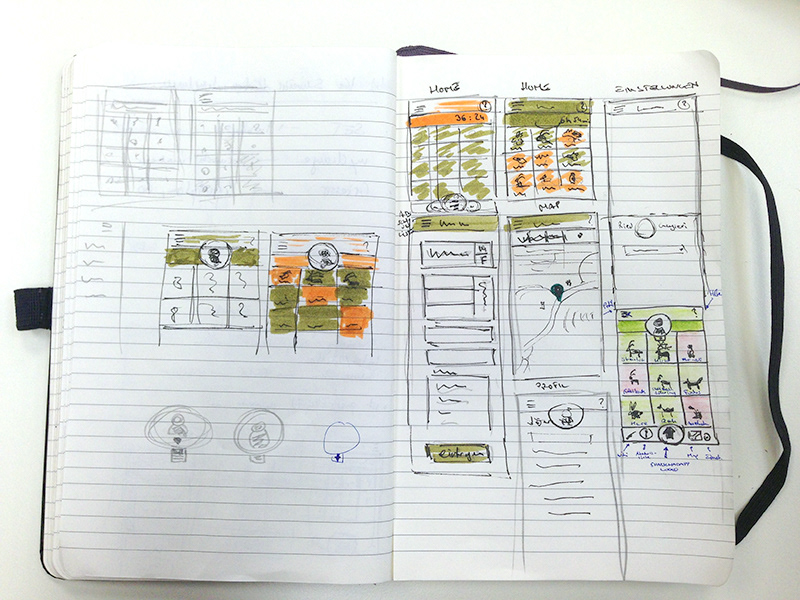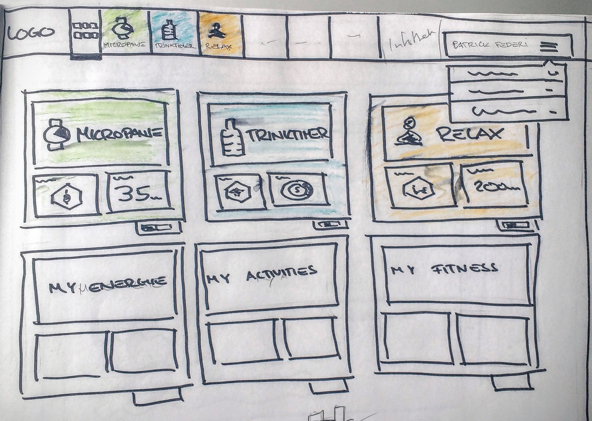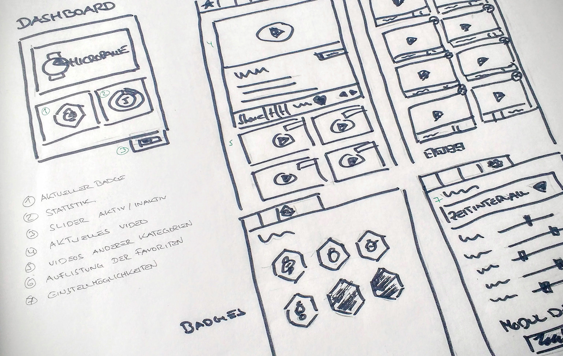 A project starts always with sketching ideas and possible user stories. Here are some scribbles for different projects.